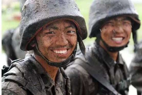 泥浆里训练了一天,满身泥巴,可笑容依然如此灿烂!看了这笑容,我们还有想不开的事吗?还有战胜不了的困难吗?